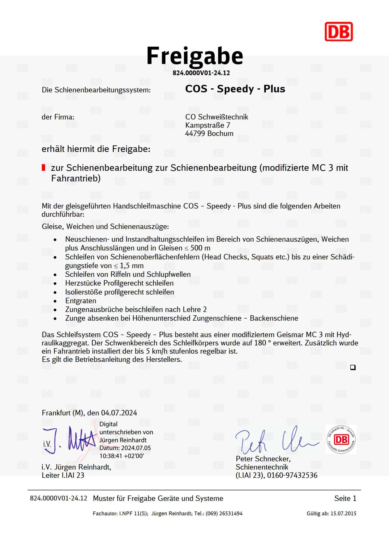 Freigabe 824.0000V01-24.12 COS-Speedy-Plus-Schleifsystem