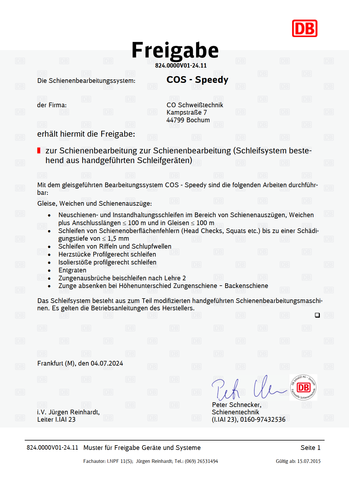 Freigabe 824.0000V01-24.11 COS-Speedy-Schleifsystem