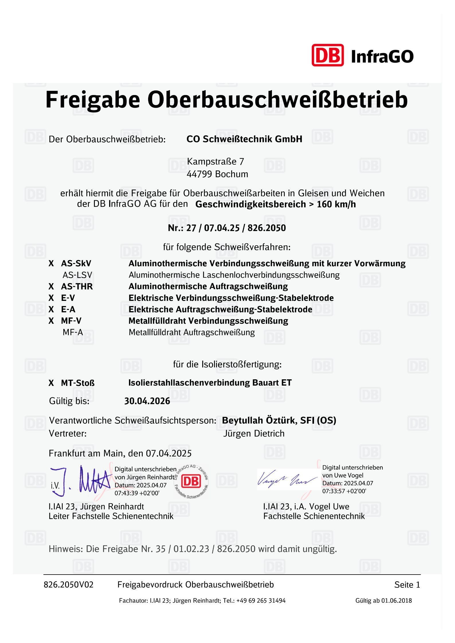 - Aluminothermisches Verbindungsschweißen (AS / SkV / SkV - L / SRZ)